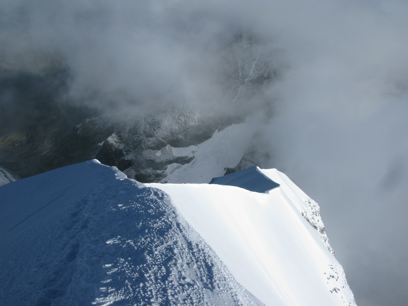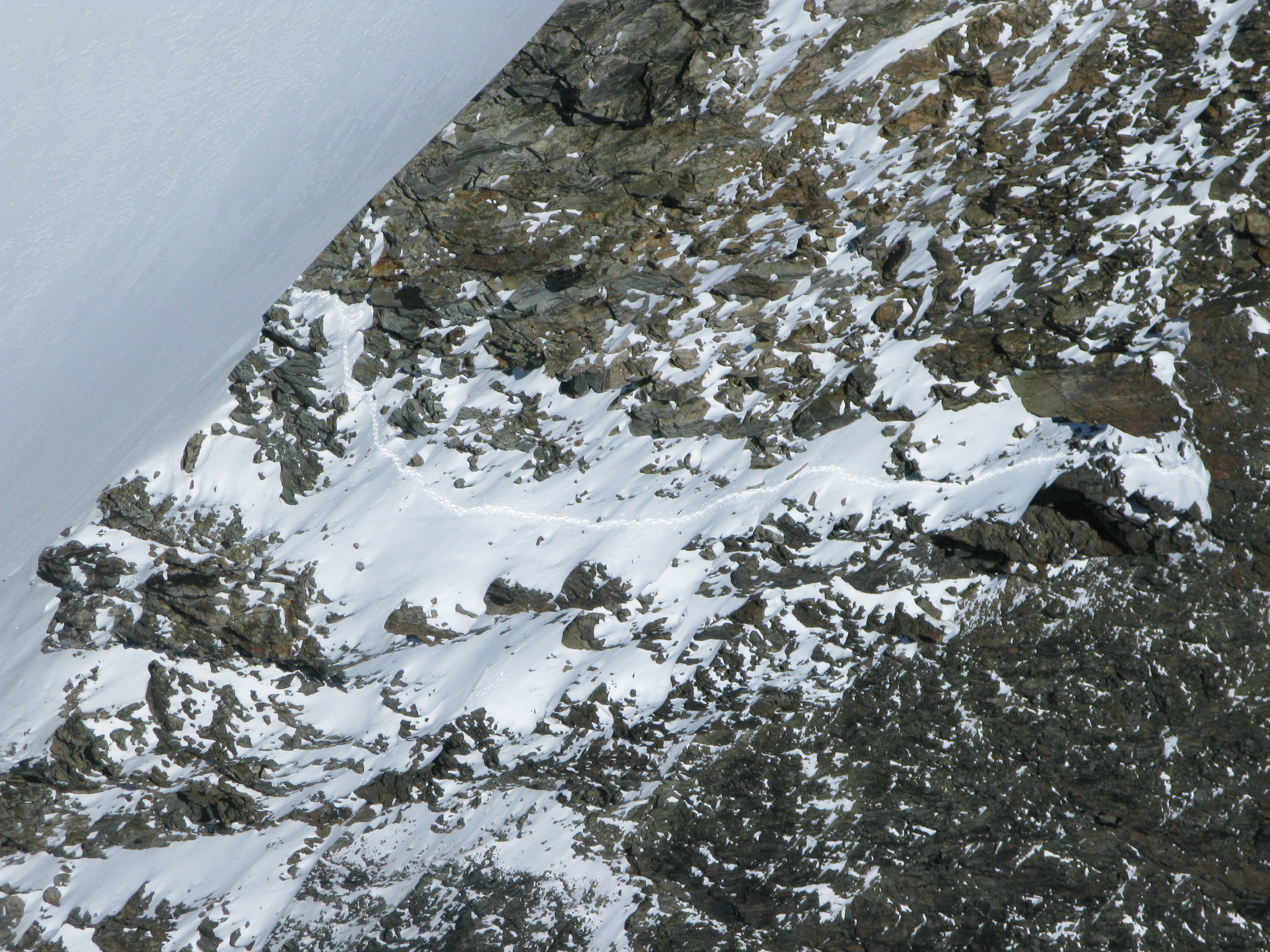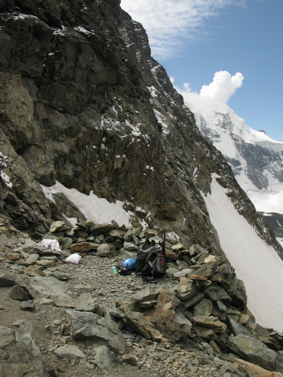 Slováka s Čechom stretávam až pri zostupe Biancogratom. S tými ťažkými batohmi a stanom to je iné sadomaso. Až o pár dní sa dozvedám, že sa k chate Marco e Rosa prebojovali o ôsmej večer. Chata už bola zavretá, ale je tam winterraum.