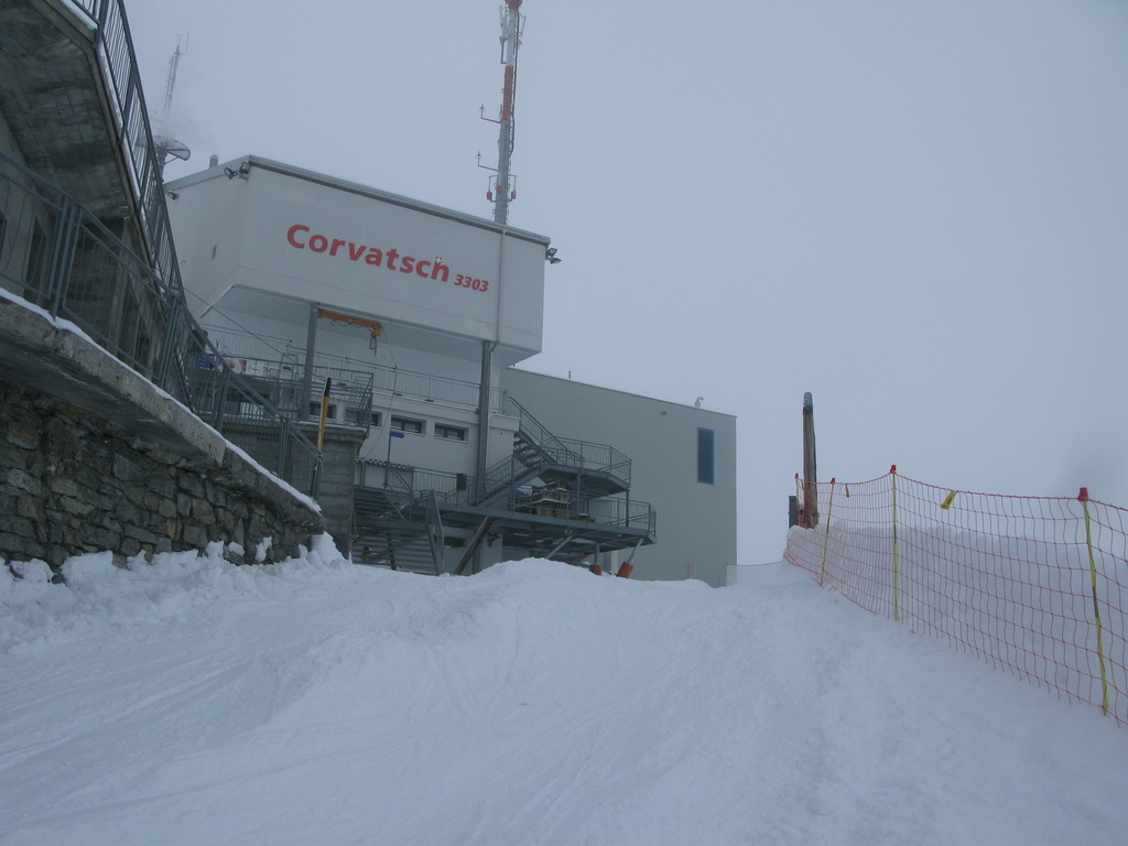 V prípade dobrej viditeľnosti by sa odtiaľto dalo na lyžiach pokračovať na kopčeky Piz Murtel a Piz Corvatsch (mapka). Dnes však viditeľnosť nebola ideálna, takže nabudúce...